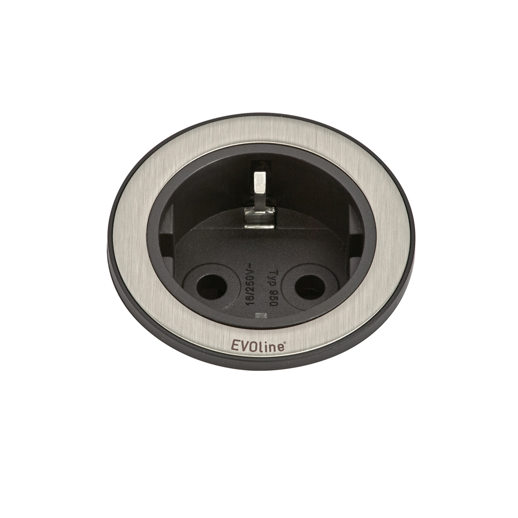 Steckdosenelement, 1-fach. Zum Einbau in Arbeitsplatte, Frontblende oder Seitenwand.