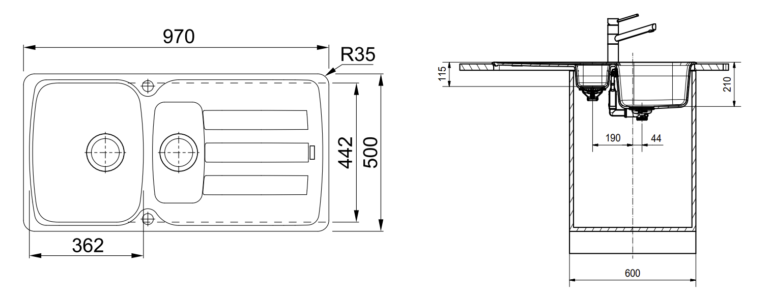 - Lieferumfang: inkl. Ablaufgarnitur & Fragranitbohrer