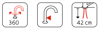 - Flexible Anschlussschläuche mit 420 mm Länge und 3/8" Überwurfmutter