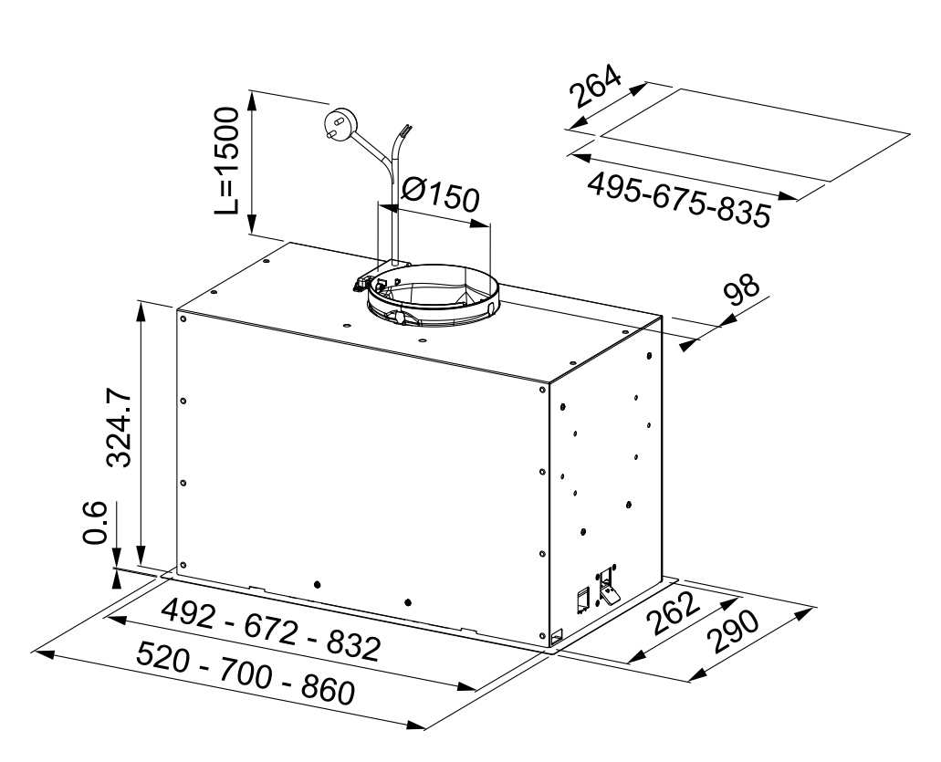 Sicherheitsabstand zum Gaskochfeld: mind. 53 cm