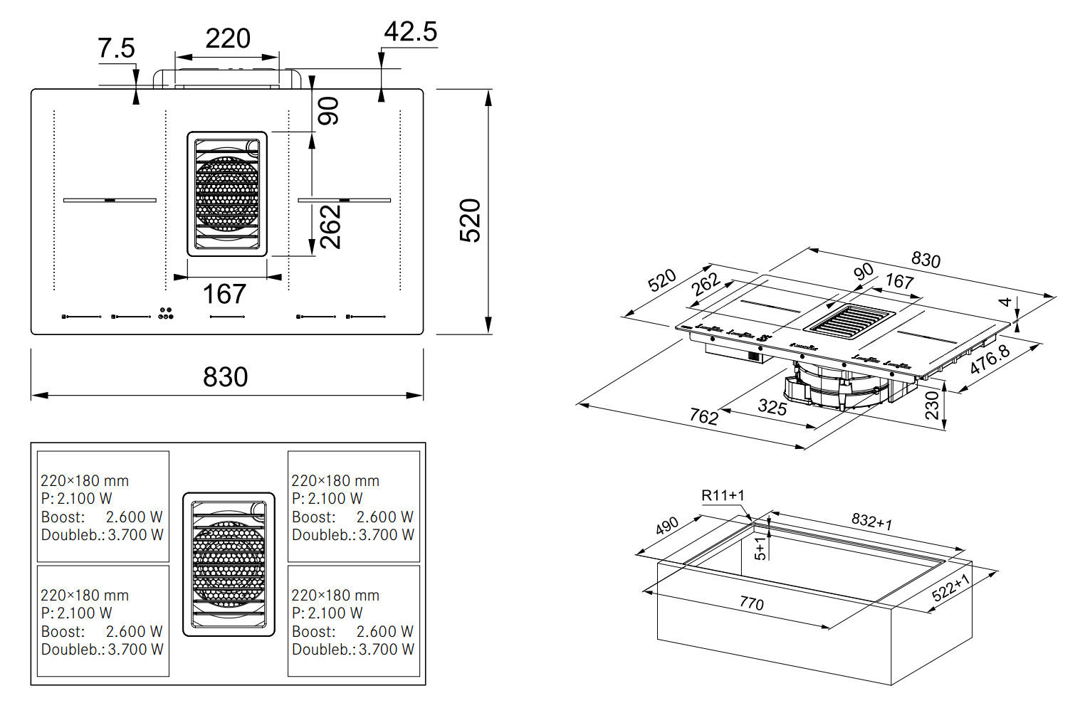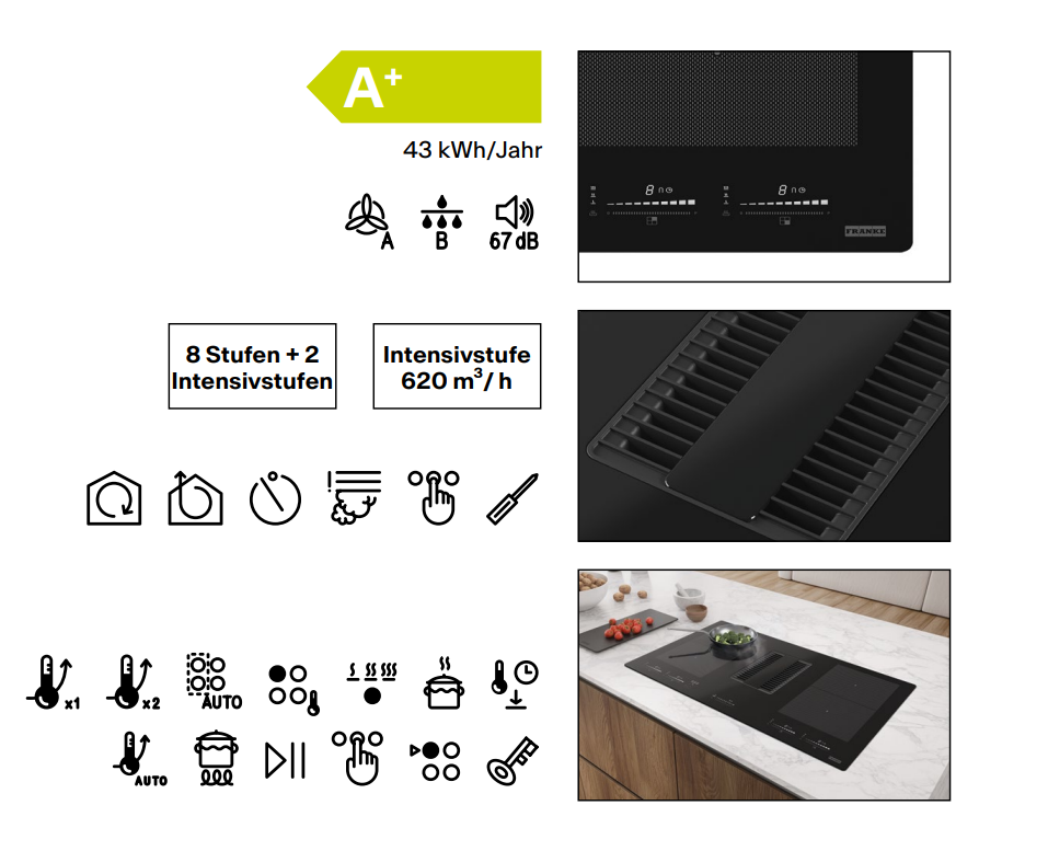 - Induktionskochfeld mit integriertem Kochfeldabzug