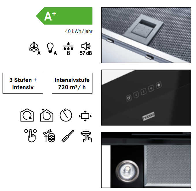 - Lüfterleistung m³/h: min. 220 / max. 400 / int. 720