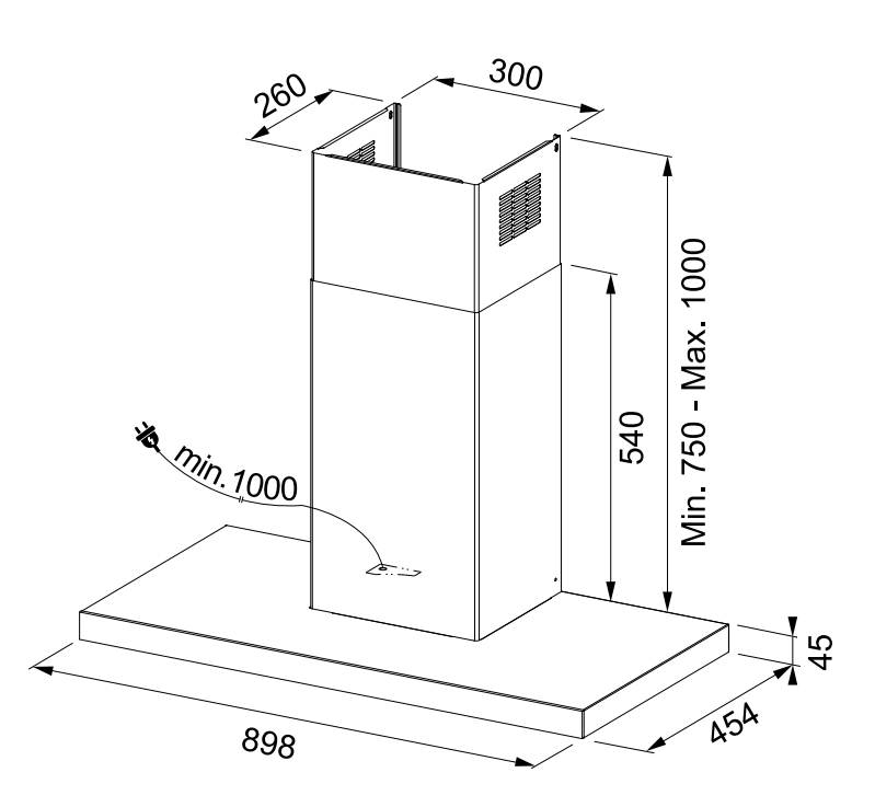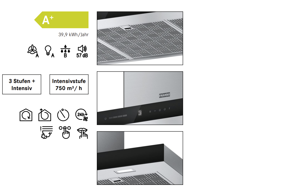 Sicherheitsabstand zum Gaskochfeld: mind. 65 cm