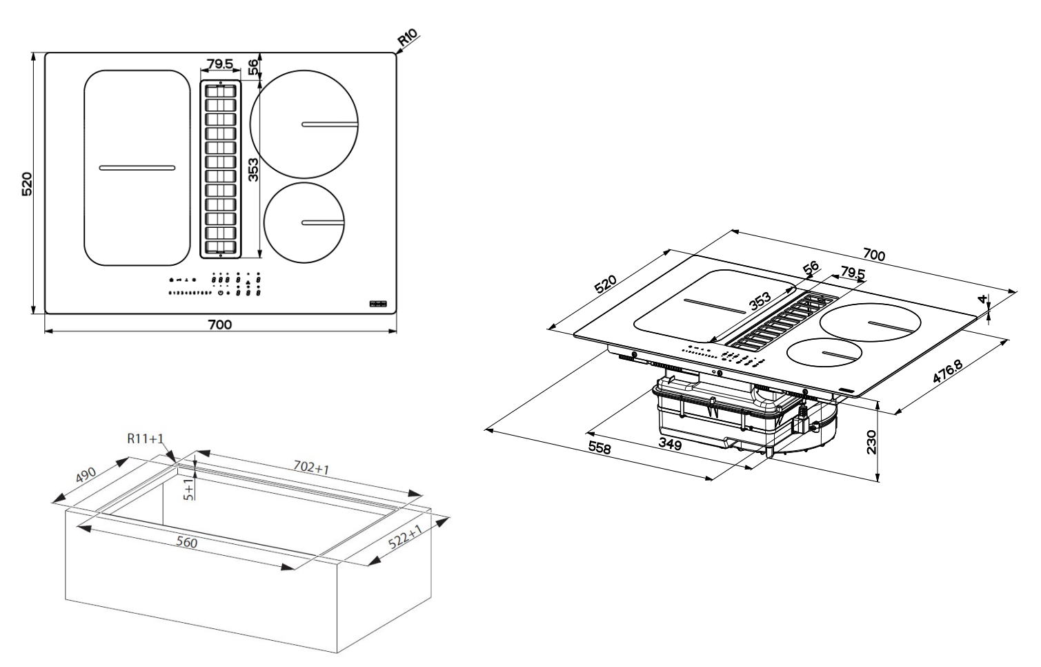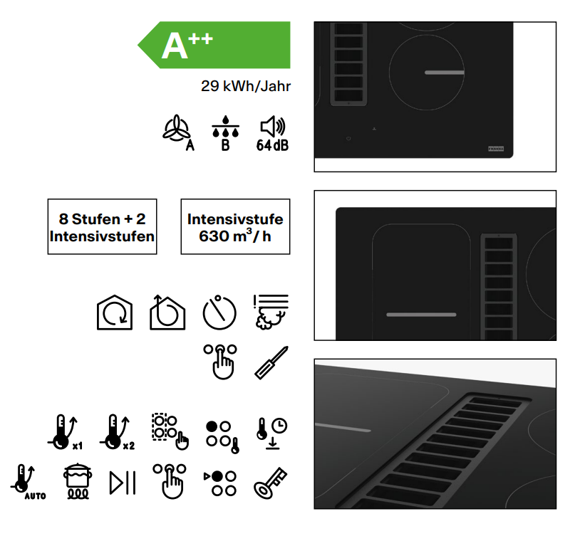 - Kompaktes Induktionskochfeld mit integriertem Kochfeldabzug