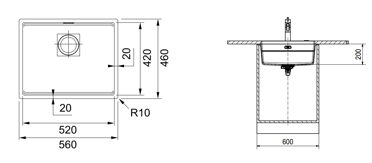 Spülenmaß: 560x460mm