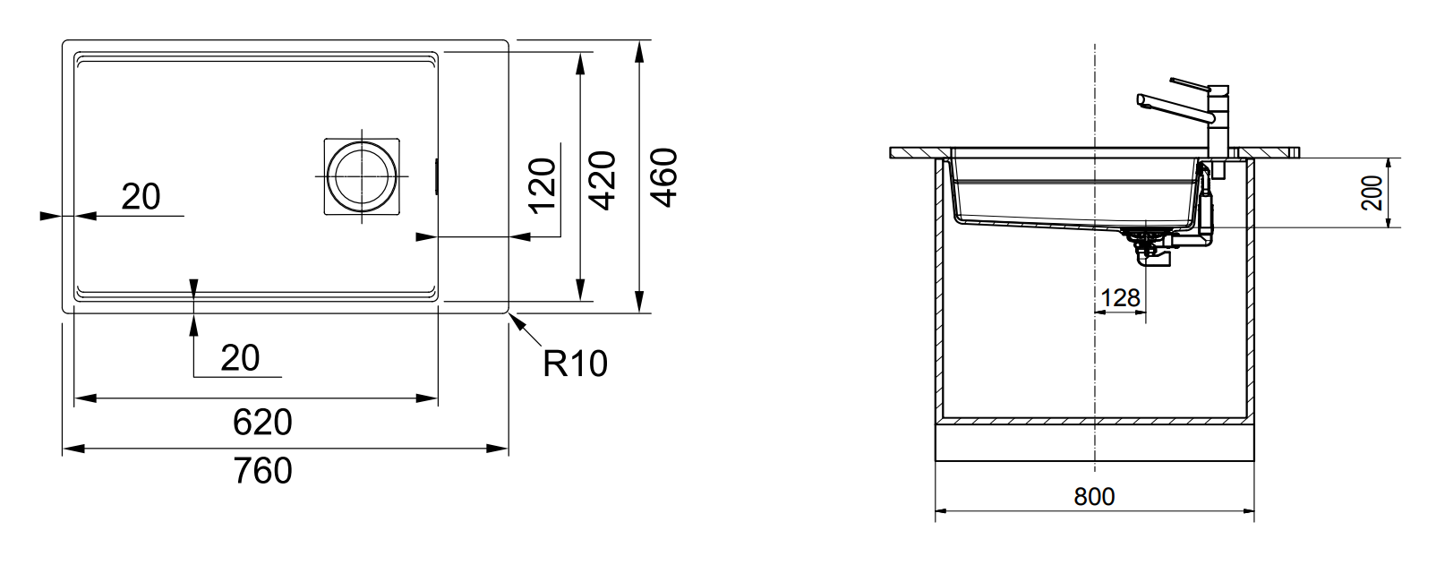 - In das Becken eingearbeitete Stufe zur Nutzung einer zweiten Arbeitsebene