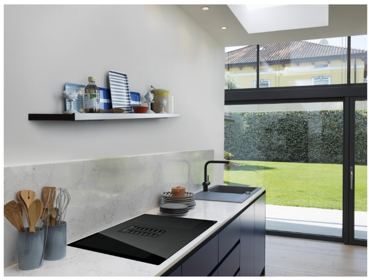 Kompaktes Induktionskochfeld mit integriertem Kochfeldabzug