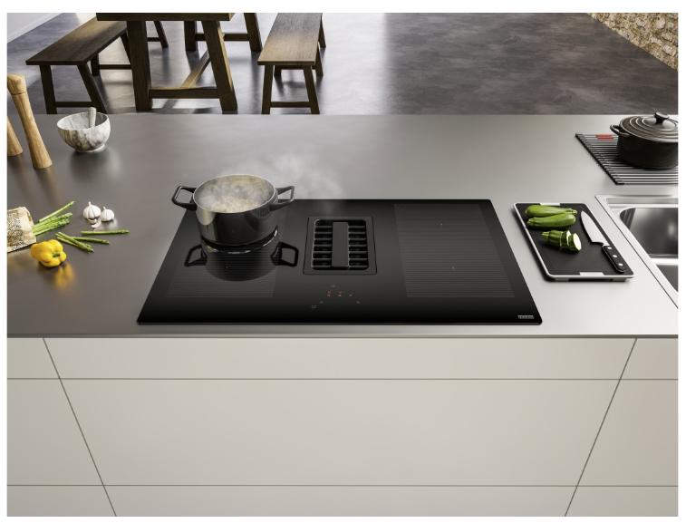Induktionskochfeld mit integriertem Kochfeldabzug