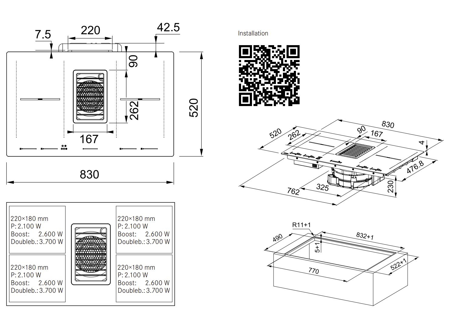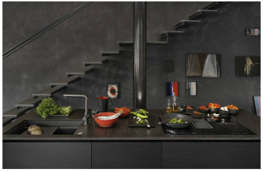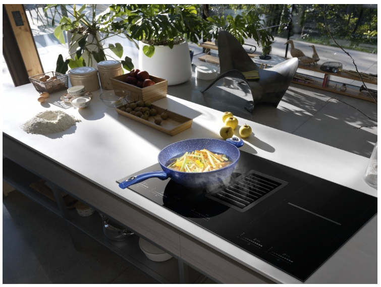 - Induktionskochfeld mit integriertem Kochfeldabzug