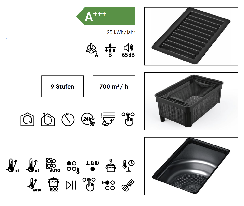 Die Erklärung der Piktogramme finden Sie unter Downloads - Was kann der Kochfeldabzug?