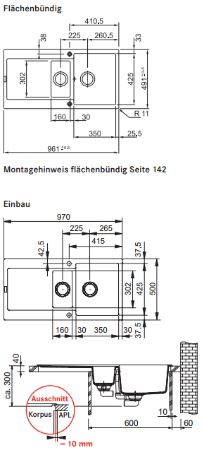 - Fragranit Einbauspüle ab 60 cm Unterschrank