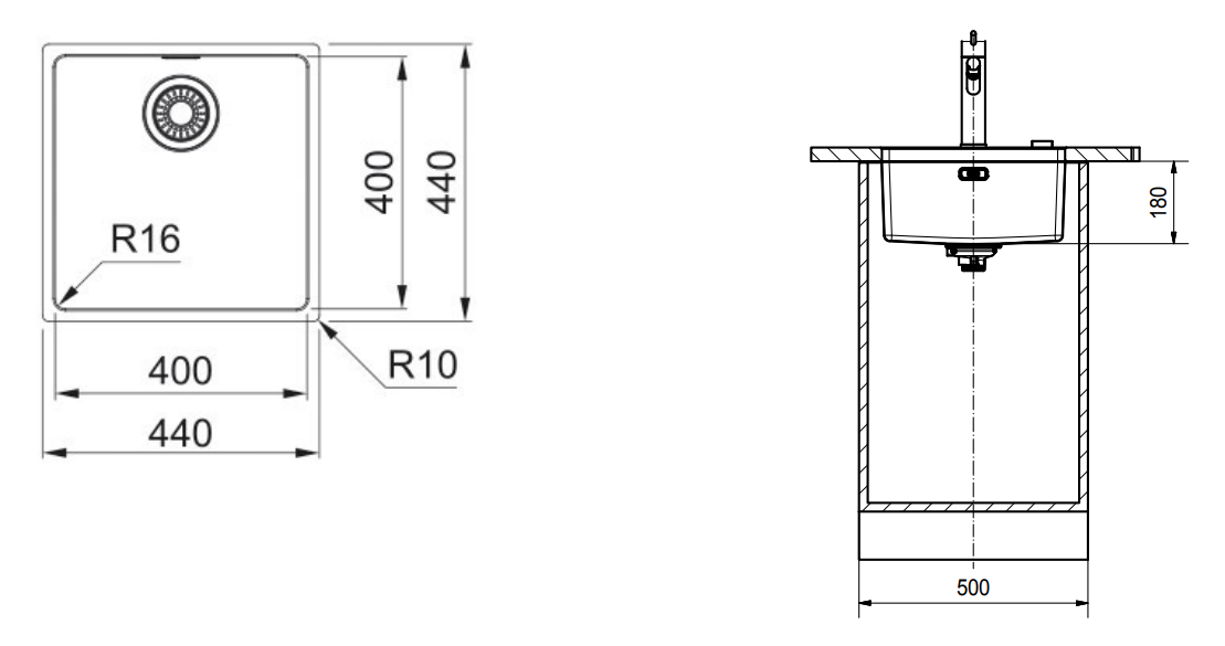 - Geradliniges Beckendesign mit schmalen 16mm Beckenradien