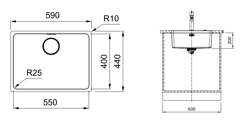 - Unterbauspüle aus rostfreiem Edelstahl gebürstet