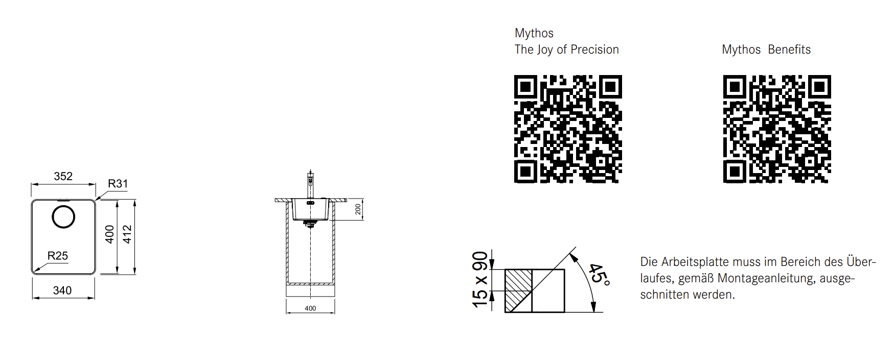 - Einbauspüle Slimtop oder flächenbündig aus rostfreiem Edelstahl gebürstet