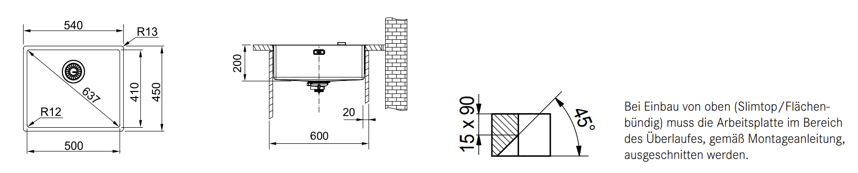 - Ausschnitt Slimtop: 510x420mm R10