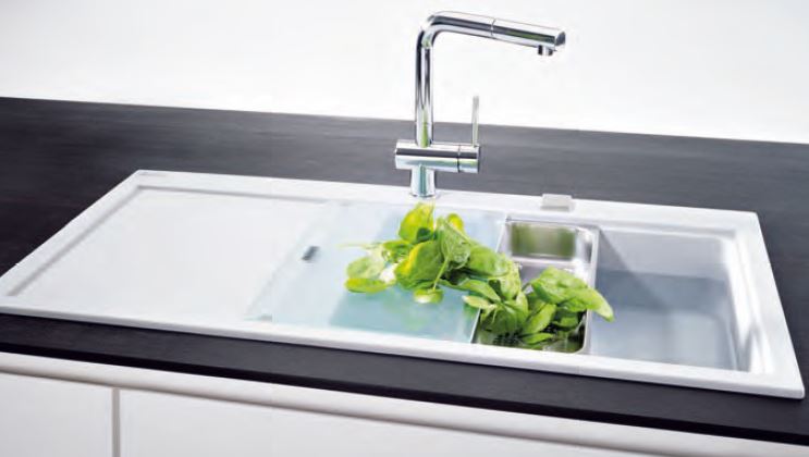 - Glasrüstbrett (optional) flexibel und leicht über die komplette Spüle verschiebbar