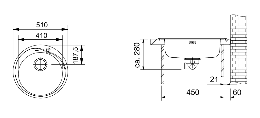 - Beckenaußenmaß: Ø 510mm