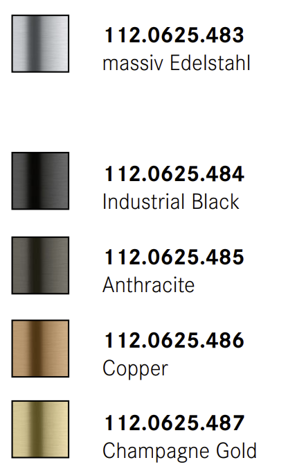 - Trendige Farbvarianten (PVD-Beschichtung auf Massiv-Edelstahl)