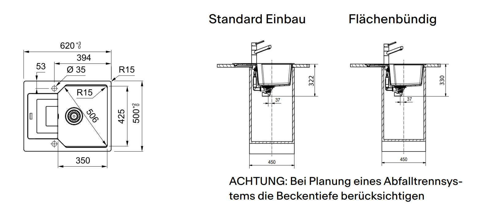 Spülenmaß: 620x500mm