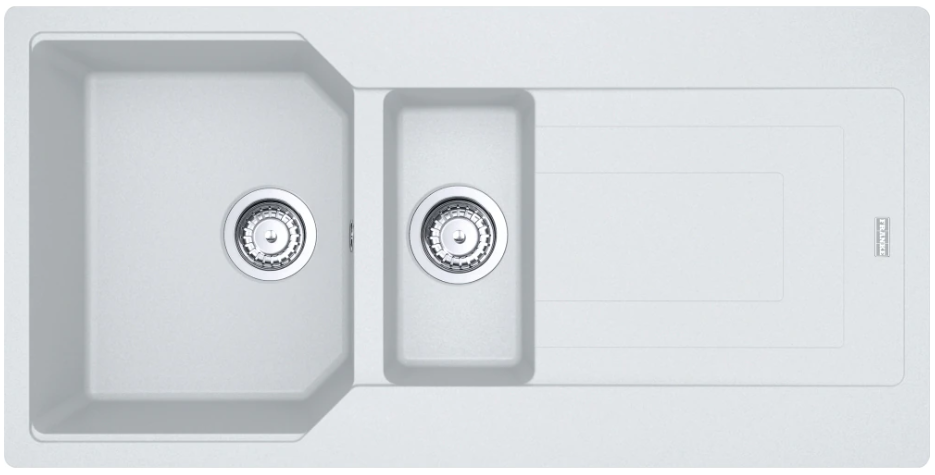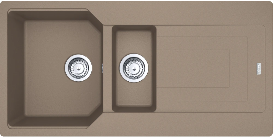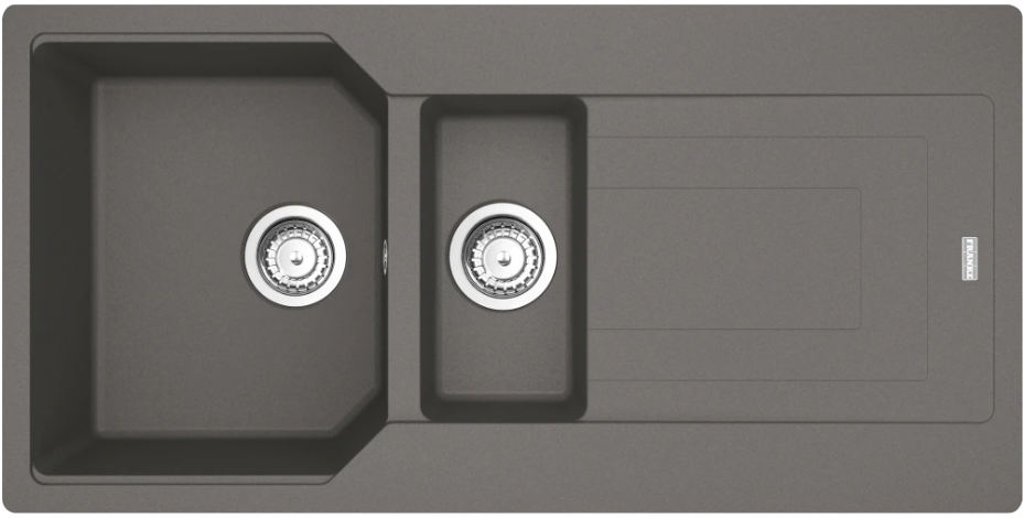 Fragranitspüle Urban, 3 1/2" Drehexcenter-Ventil, reversibel, runder Überlauf, 2 Löcher angebohrt, Sliding Clips