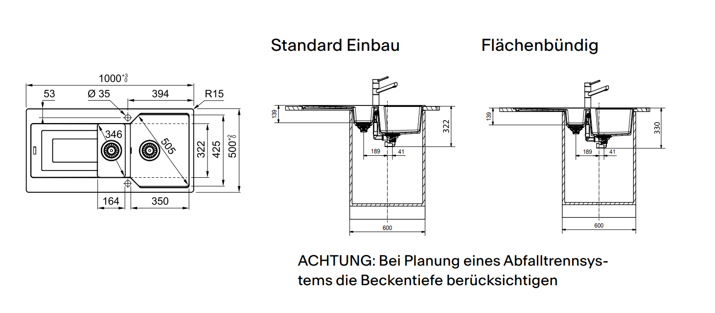 - Spüle ist sowohl als Einbau & Flächenbündige Variante einbaubar - ab 60 cm Unterschrank