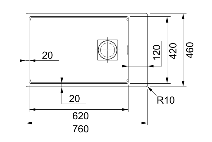 - Spülenmaß: 760 x 460 mm