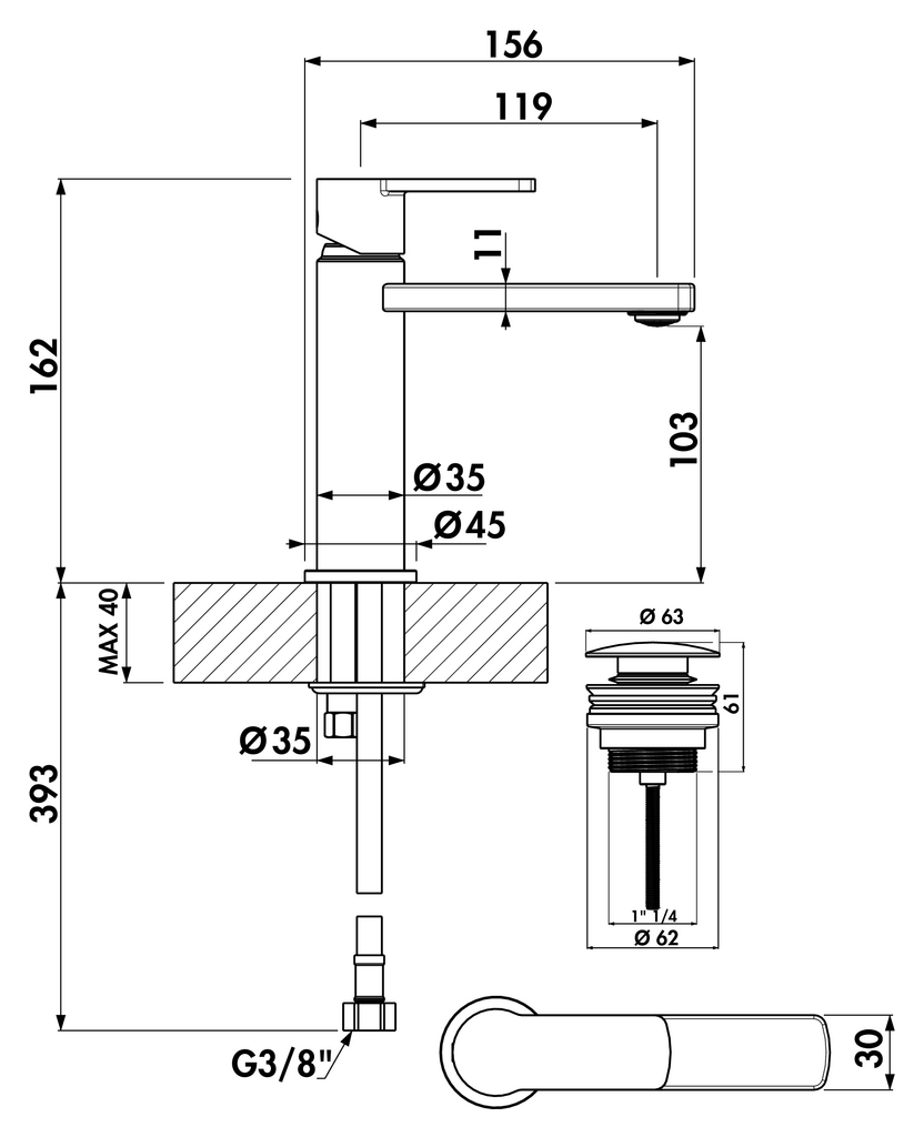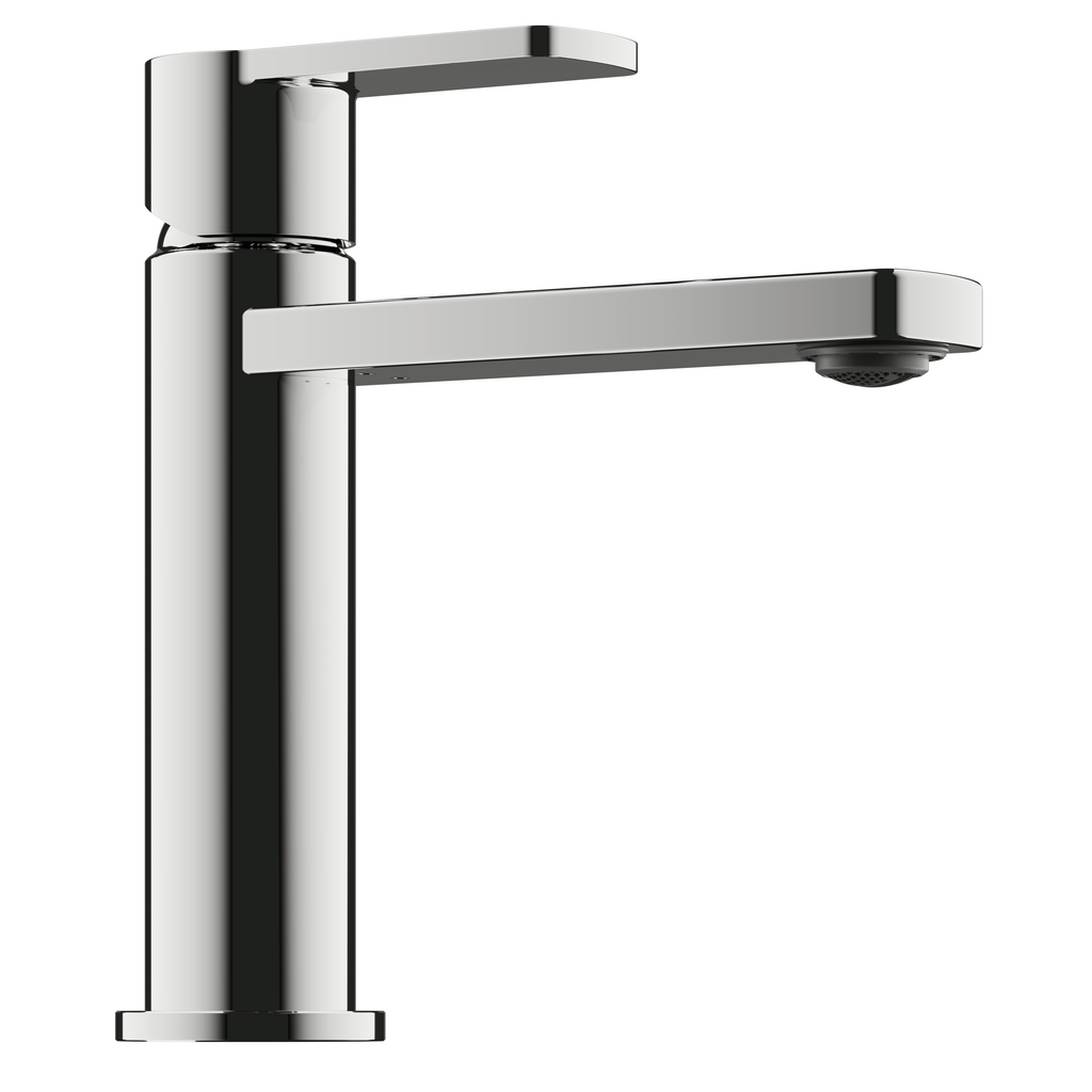Einhebelmischer mit Keramikkartusche. Mit Ablaufgarnitur Klick-Komfort.
