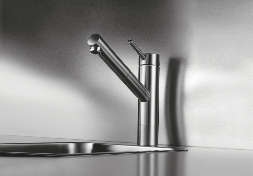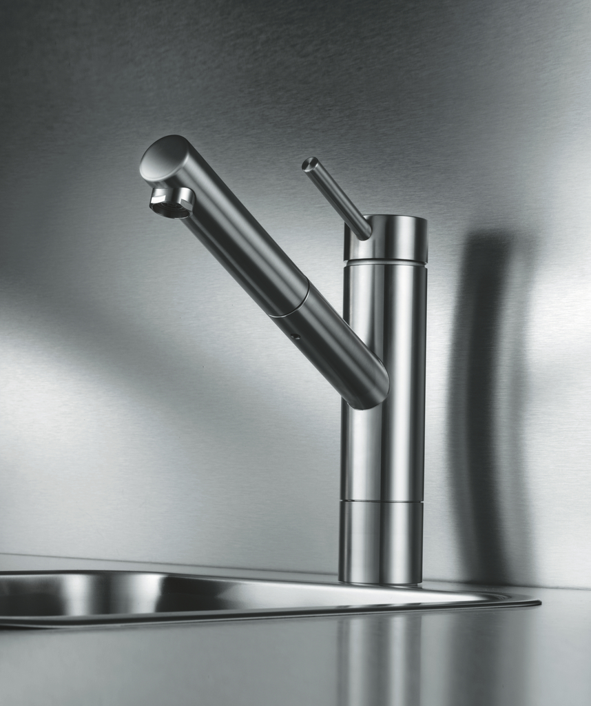 KWC Einhebelmischer. Mit schwenk-/herausziehbarem Auslauf und Keramikkartusche.
