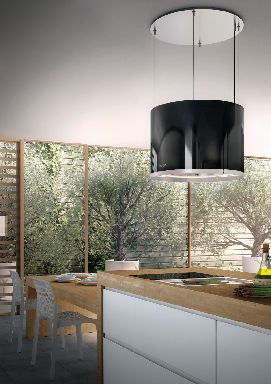 Die berbel Inselhaube Skyline Round lässt Freiräume in der Küche. Die Abzugshaube arbeitet leise und erzielt beste Ergebnisse bei der Luftreinigung. Mit der CenterFlow-Abscheidung ist sie trotz des geringen Durchmessers von 60 cm auch für Kochfelder bis 80 cm Breite geeignet. Mit der Liftfunktion verschwindet sie unter der Decke. Kommt ihr Einsatz, fährt sie auf die optimale Position zum Kochfeld. Küchendunst hat damit keine Chance mehr! Eine echt runde Sache.