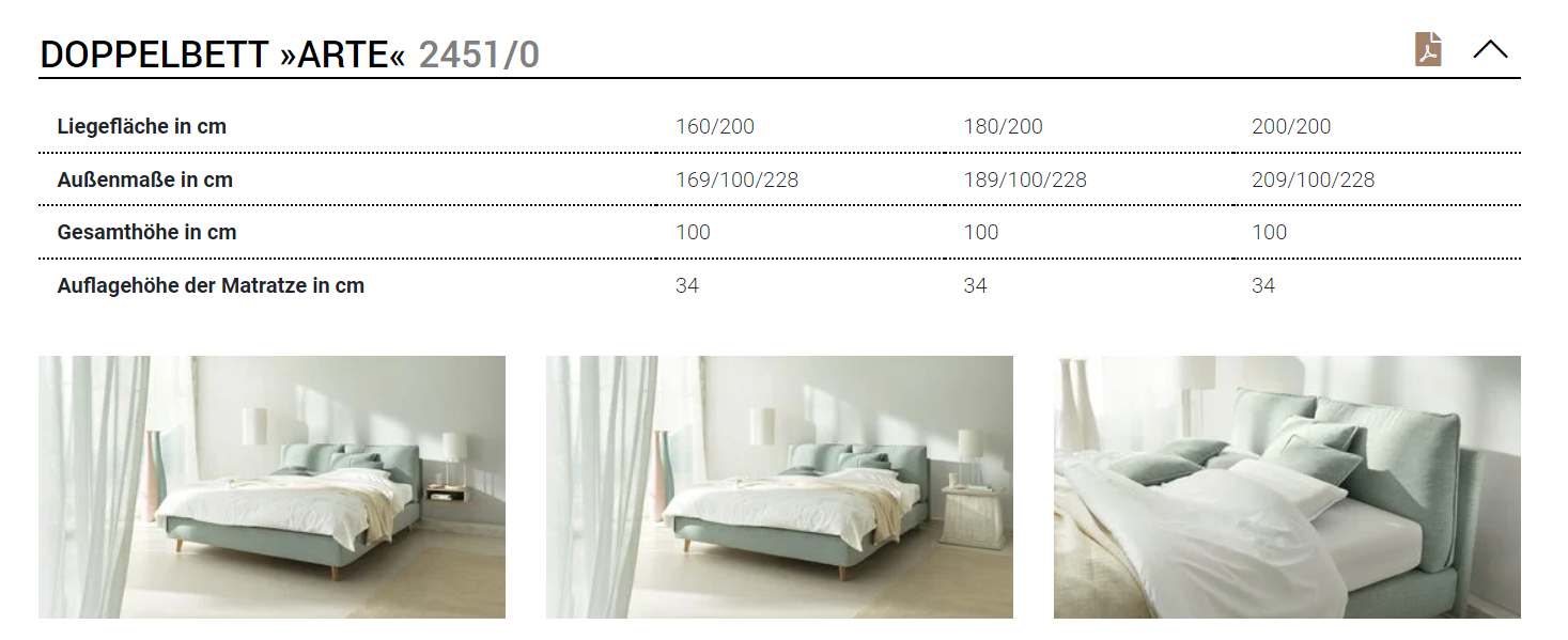 - Liegefläche/Bestellgröße in cm 160/200 180/200 200/2100