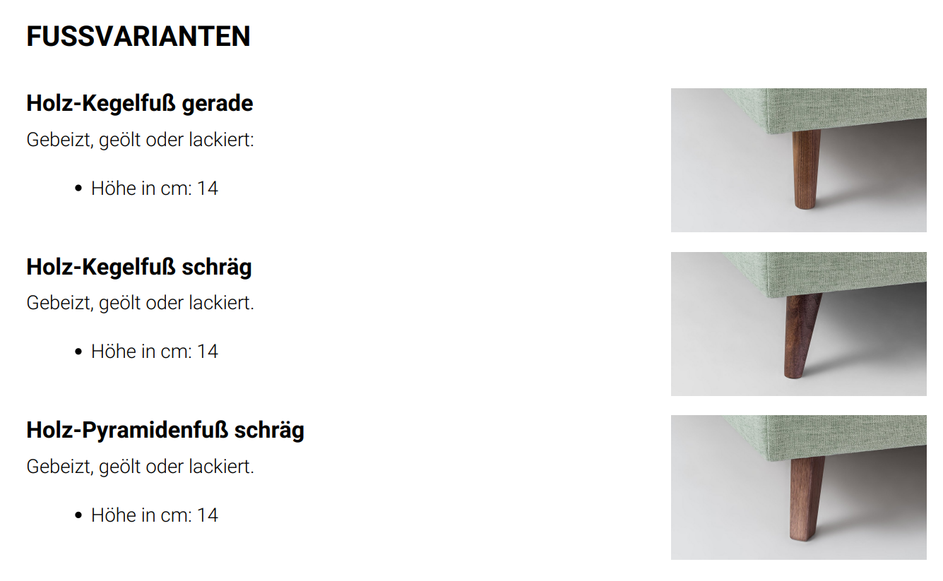 - bitte geben Sie bei der Bestellung die exakte Stoff-Nr. sowie die Fußvariante und Holzart an!