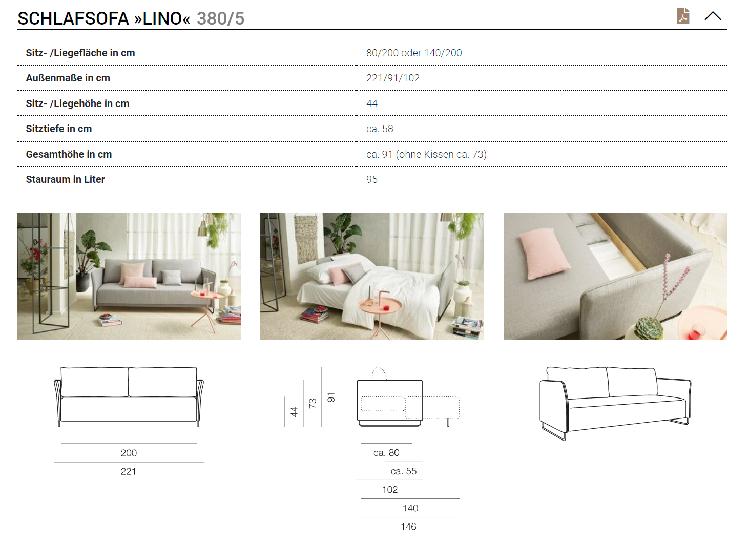 Die hochwertige Taschenffederkern-Polsterung macht aus Lino ein Sofa mit einem hohen Sitz- und Liegekomfort. Dank der Hubmatic-Funktion können Sie ganz schnell und ohne Anstrengung das Sofa in ein Doppelbett verwandeln. Lino ist ausgestattet mit Armteilen, zwei Rückenlehnkissen und ausreichend Stauraum.
