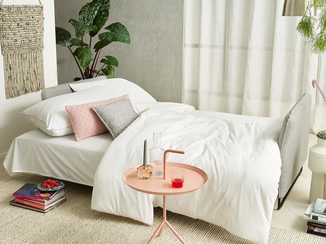 Die Doppelliege Lino macht durch seine schmalen, leicht nach außen gebogenen Armlehnen sowohl im Jugend- als auch im Wohn- oder Gästezimmer eine schlanke Figur. Kaum zu glauben, dass da auch noch ein Doppelbett versteckt ist! Die im Armteil integrierte, elegante Metallkufe ist in Glanzchrom oder Mattchrom schwarz wählbar.