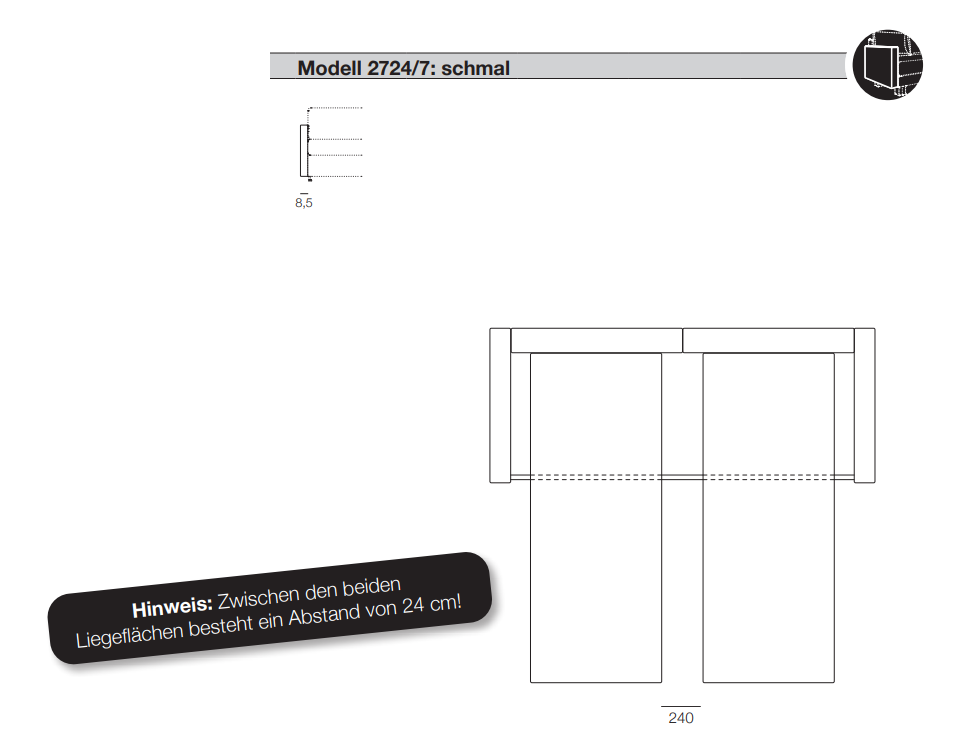 Auf dem Längsschläfer schläft man tatsächlich wie in einem richtigen Doppelbett. Mit nur zwei Handgriffen verwandeln Sie den Zweisitzer in ein vollwertiges Bett mit loser 14 cm hoher Schaumstoff-Matratze mit Borderbezug (Lüftware, nicht waschbar).