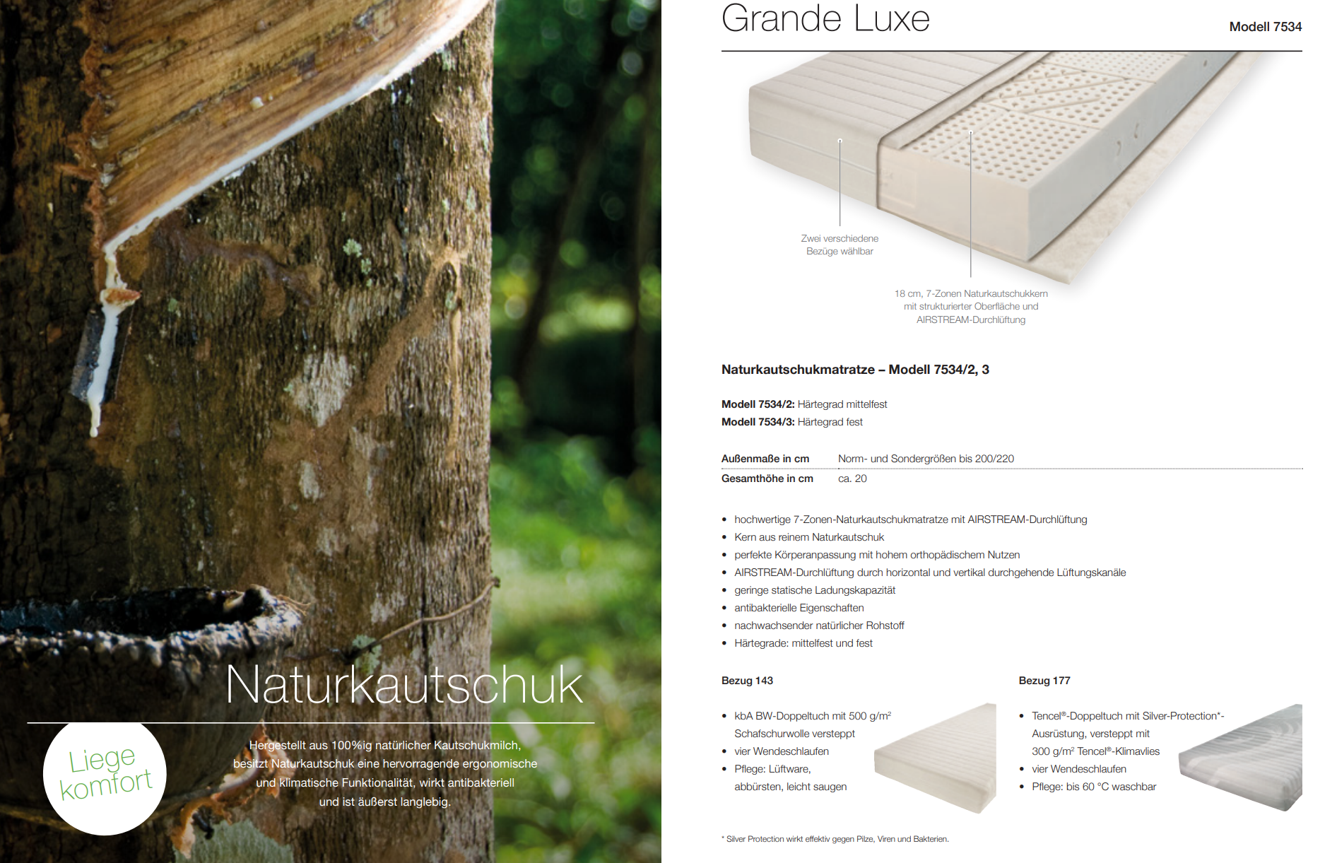 ist eine sehr hochwertige 7-Zonen-Naturkautschukmatratze für die perfekte Körperanpassung mit hohem orthopädischen Nutzen. Lüftungskanäle garantieren eine optimale Durchlüftung. Naturkautschuk ist von Natur aus nahezu antistatisch und hat antibakterielle Eigenschaften. Zwei Härtegrade und Bezüge stehen zur Auswahl.