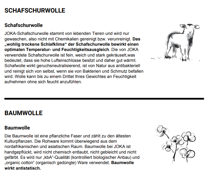 Sondergrößen auf Anfrage - Nähre Informationen siehe unter Downloads "Joka Natur Broschüre Naturbettwaren"