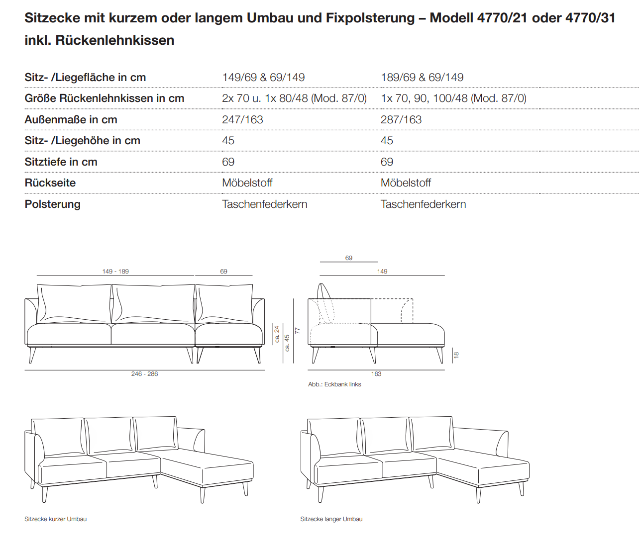 - Außenmaße 149+69x149 cm oder 189+69x149 cm