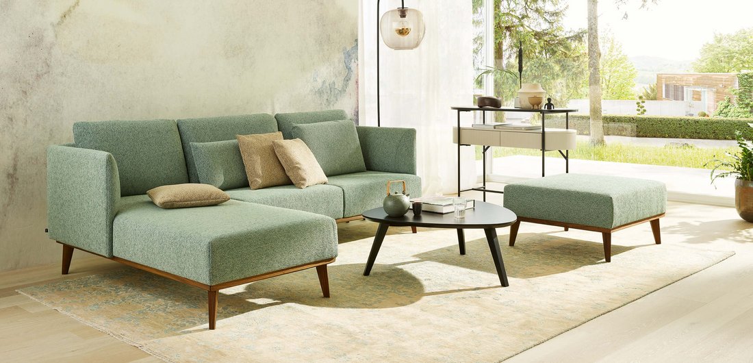 Sämtliche Sichtholzteile können wahlweise in Eiche, Nuss oder Buche gewählt werden, wobei die Ausführung in Buche laut allen JOKA Holzmustern gebeizt werden kann. Außerdem stehen zahlreiche unterschiedliche Rückenlehn- und Zierkissen zur Auswahl, die Tosca zu Ihrem individuellen Modell werden lassen.