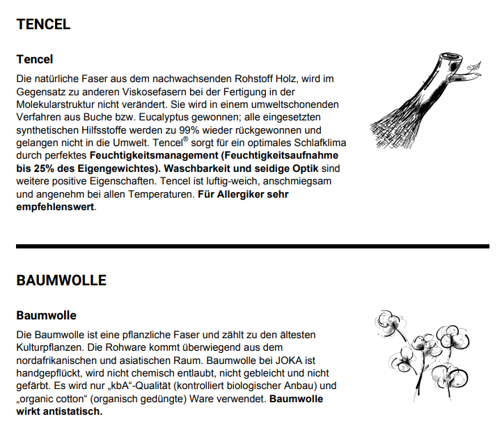Sondergrößen auf Anfrage - Nähre Informationen siehe unter Downloads "Joka Natur Broschüre Naturbettwaren"