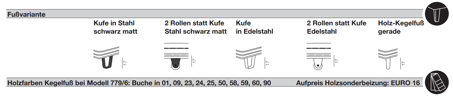 Für die Wohnliege stehen insgesamt fünf Fußvarianten zur Verfügung. Ein echtes Must-have ist der dazugehörige Einhängetisch. Er kann an allen vier Seiten eingehängt und in jede beliebige Stellung verschoben werden. Wenn er nicht gebraucht wird, können Sie ihn ganz leicht im Möbelgestell verstauen.