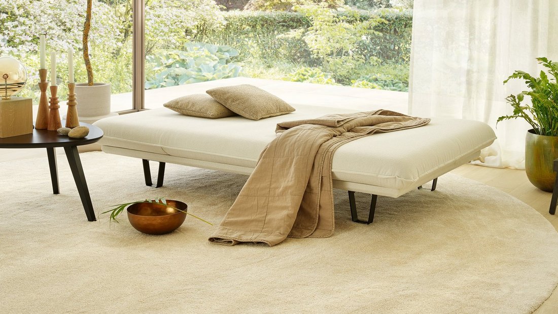 (Die Wohnliege gibt es übrigens auch als wetterfeste Variante für Draußen!)