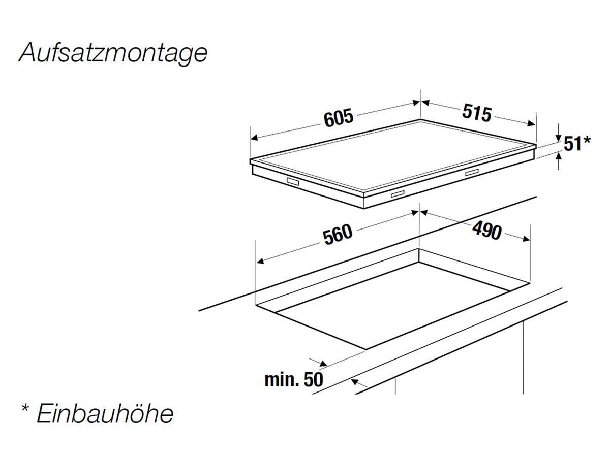 - Ausschnittmaße: 560 x 490 mm (B x T)
