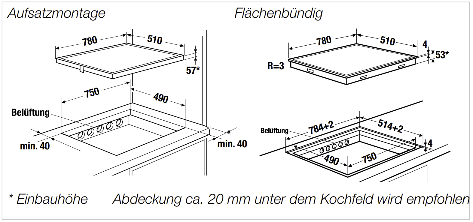 - Gerätemaße B x T ca. 780 x 510 mm - Einbauhöhe 57 mm