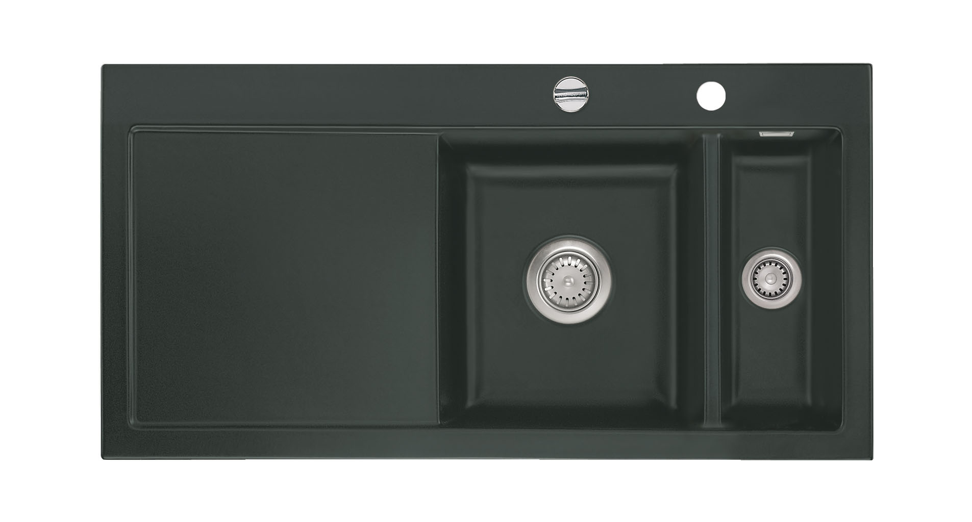 Mit einer Spüle alle Funktionen eines gut organisierten Nass-Arbeitsplatzes abdecken: zubereiten, spülen, abtropfen und abstellen, dafür steht die Mera 100. Praktisches und hochwertiges Zubehör unterstreicht ihre Möglichkeiten. Dabei ist die Abtropffläche leicht zum Becken hin abgeschrägt, um Wasser direkt in das Becken laufen zu lassen. In das seitliche Becken kann die Resteschale eingesetzt werden, um beim Abwasch direkt jegliche Lebensmittelreste sauber aufzufangen. Sie ist als klassische Einbauspüle und als flächenbündige Spüle erhältlich.