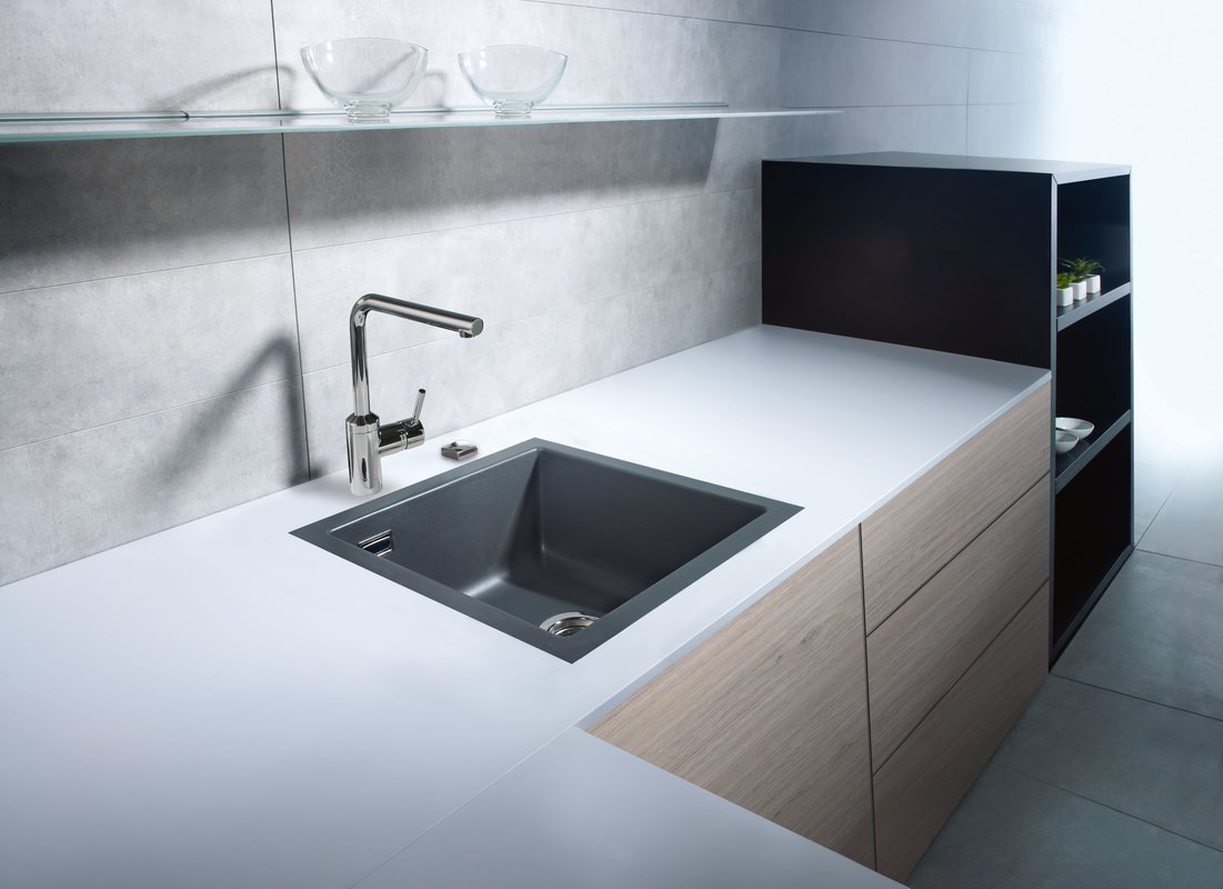 - Spüle zum flächenbündigen Einbau in Natur-/Kunststein-Arbeitsplatten für 45 cm Schrankbreite