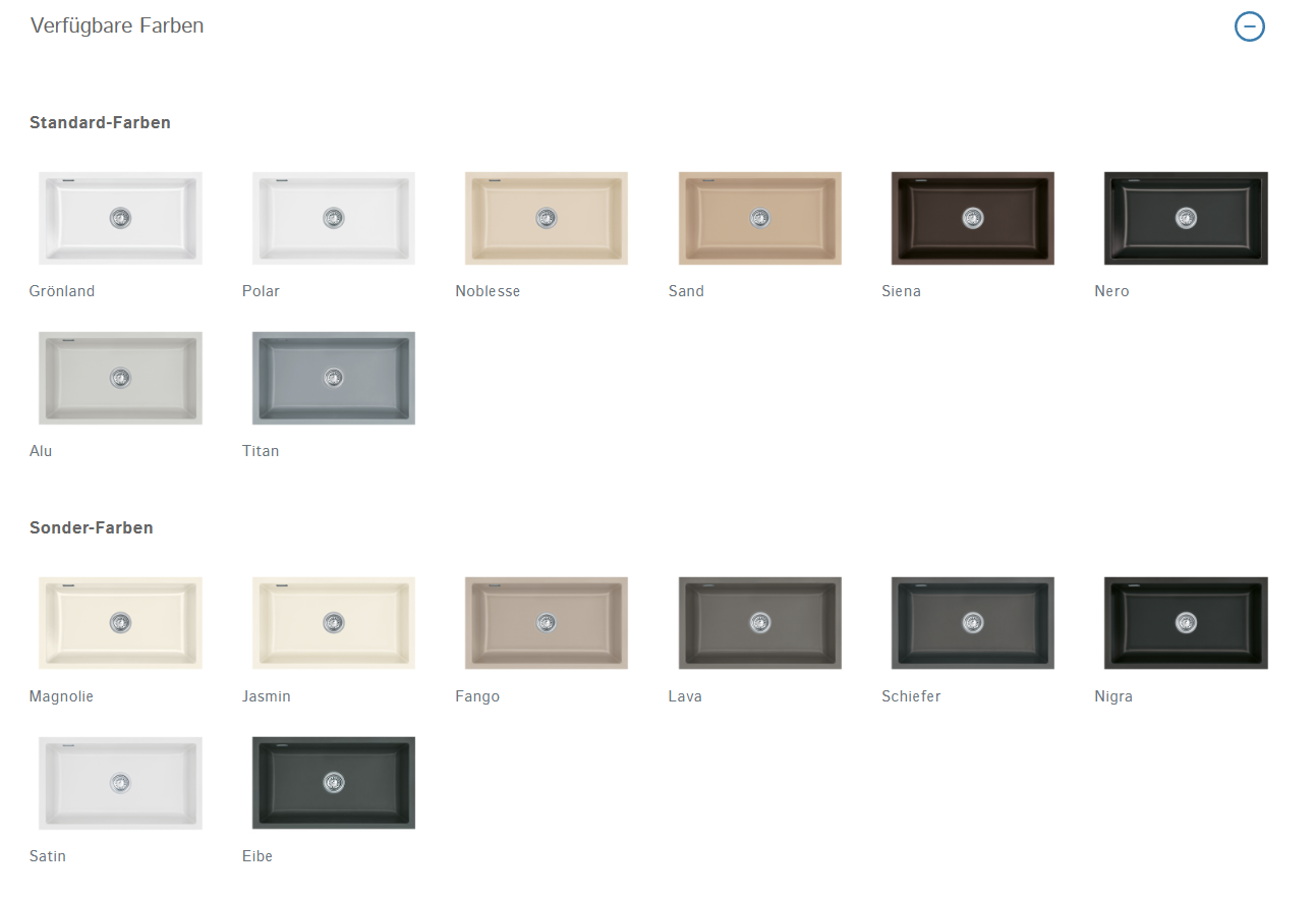- Keine Hahnlochbohrung. Bohrungen für Armatur / Excenter müssen in der APL vorgesehen werden.