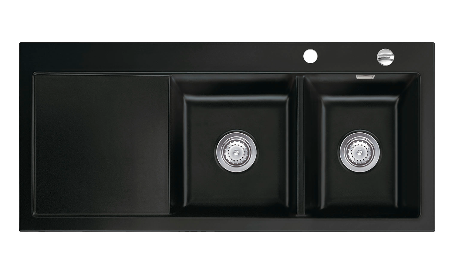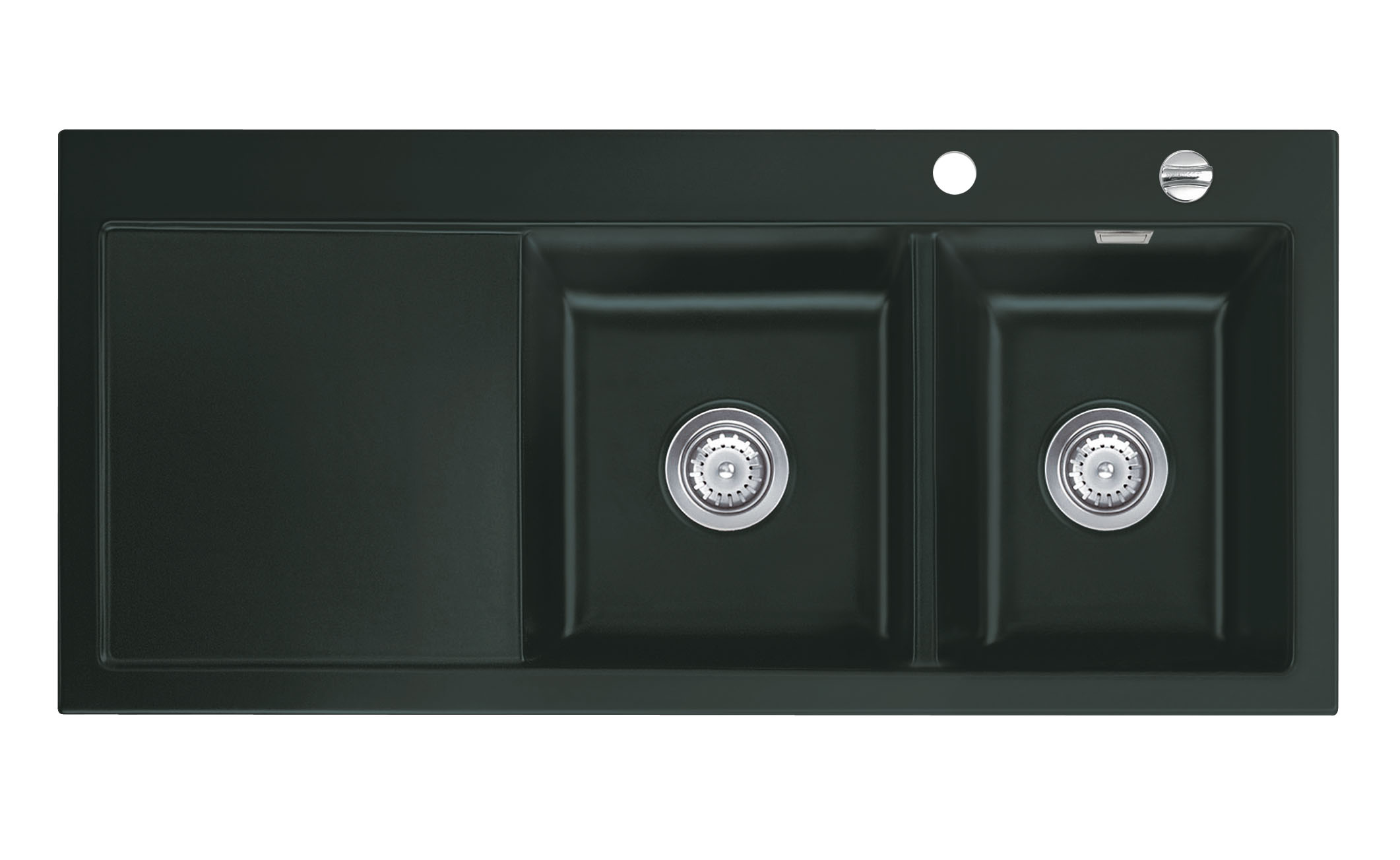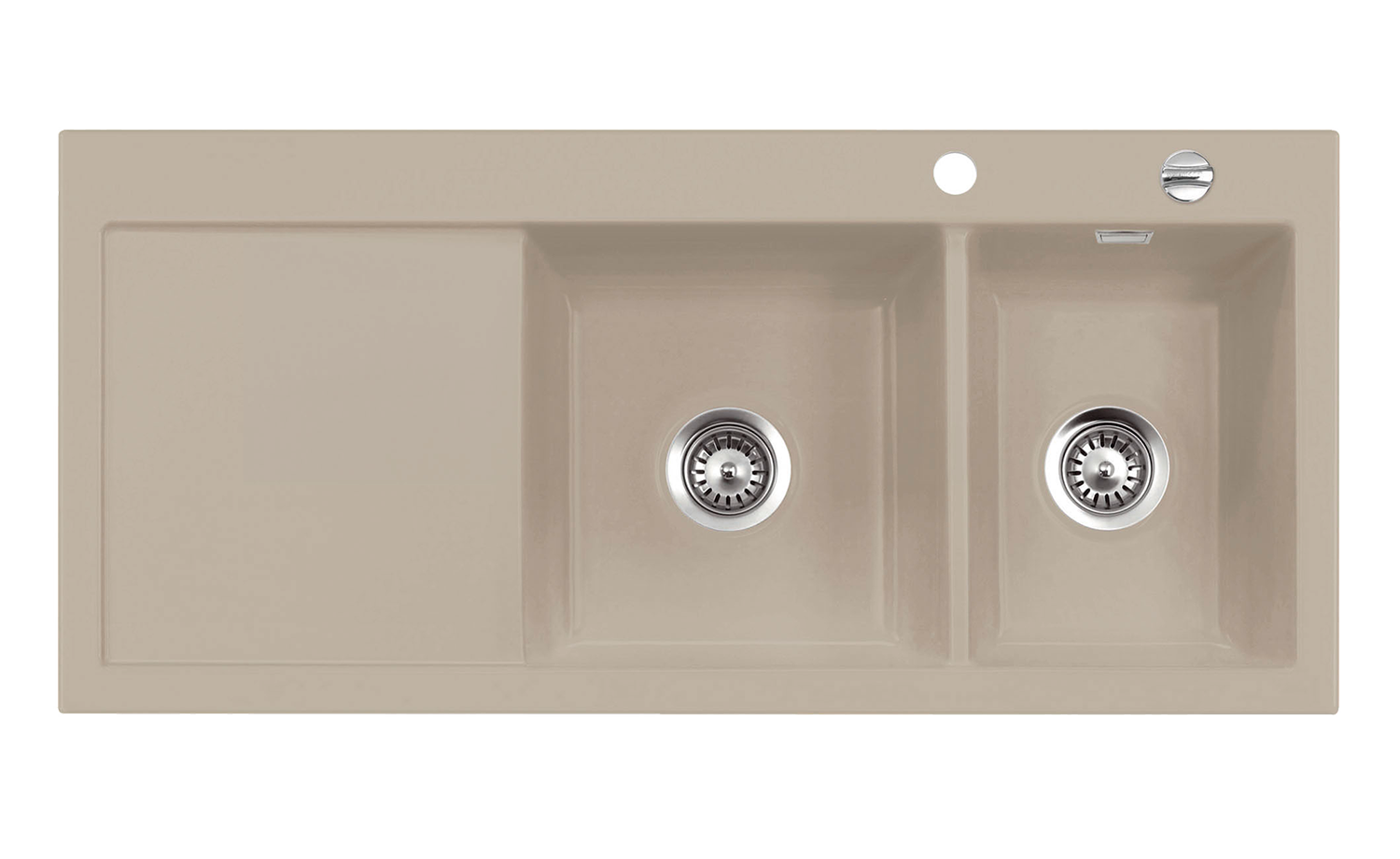 Für Profis und solche, die es werden wollen, bieten die beiden Becken der Mera Double optimale Voraussetzungen. Das am Rand gelegene, schmalere Becken verfügt über einen integrierten Überlauf. Links anschließend befindet sich das größere Becken, an welches die Arbeitsfläche angrenzt. Diese ist nach innen geneigt, um Wasser direkt in das Becken zu lenken. Es besteht die Auswahl darüber, ob die Becken rechts oder links platziert werden sollen. Passend für die Schrankbreite von 80 cm ist die Mera Double ausschließlich als klassische Einbauspüle erhältlich.