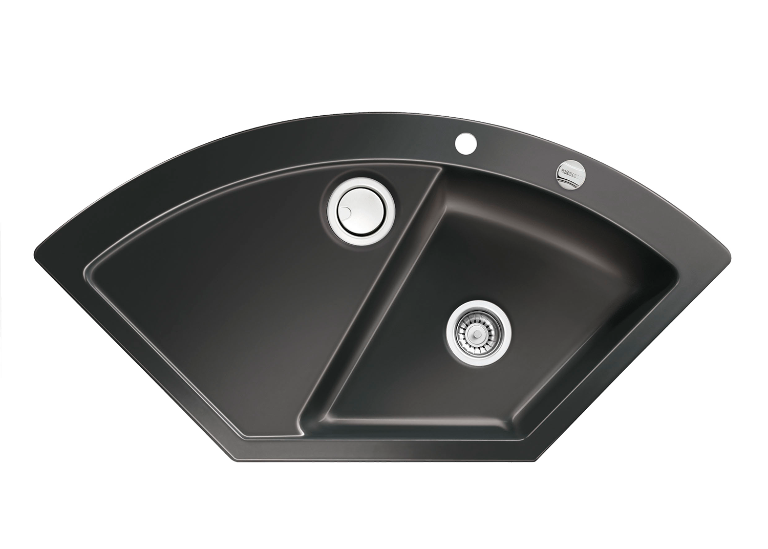 - Spüle zum flächenbündigen Einbau in Natur-/Kunststein-Arbeitsplatten für 90 cm Eckschrankbreite