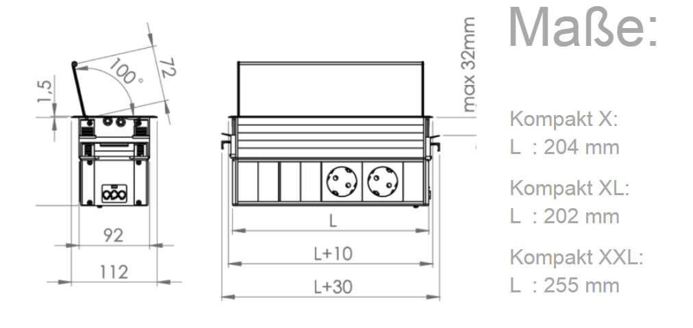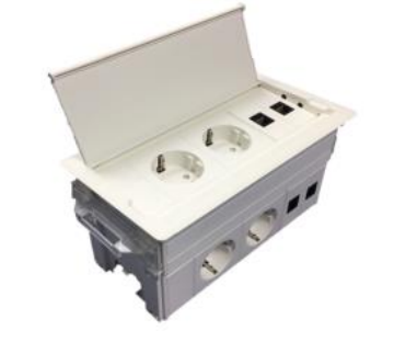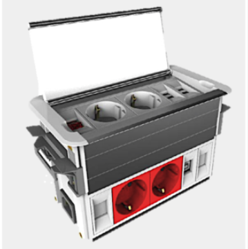 - 2 Schuko und 2 Datenanschlüsse für mobile Geräte auf der Tischoberfläche