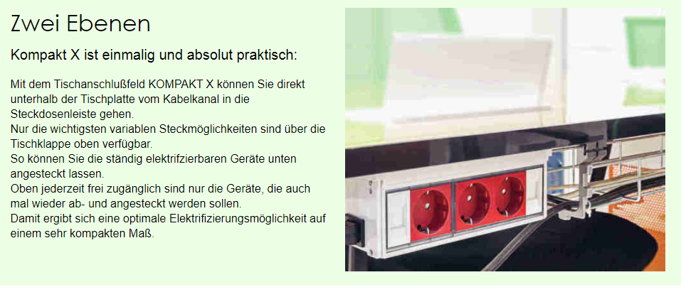 - und 4 Steckdosen für stationäre Geräte unter dem Tisch.